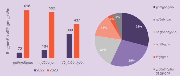 როგორც კვლევაში ვკითხულობთ, მანამდე, საქართველოდან მსუბუქი ავტომობილების რეექსპორტის მთავარი დანიშნულების ადგილი აზერბაიჯანი იყო, თუმცა 2023 წლიდან დინამიკა შეიცვალა და ცენტრალური აზიის ქვეყნები, კერძოდ, ყირგიზეთი და ყაზახეთი დაწინაურდნენ.